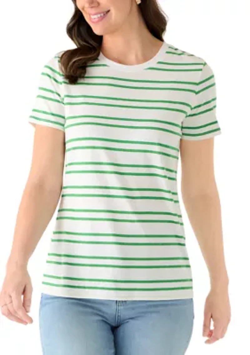 This Crown & Ivy™ t-shirt features classic stripes for a timeless, casual look. Pullover Crew neck Short sleeves Imported Belk Exclusive Product Specifications 27" L Material & Care Cotton, modal Machine washable