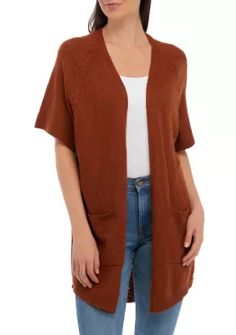 This short sleeve cardigan from Wonderly is the perfect light layer for springtime. Open front Short raglan sleeves Imported Belk Exclusive Product Specifications 35" L Material & Care Cotton, acrylic Machine washable