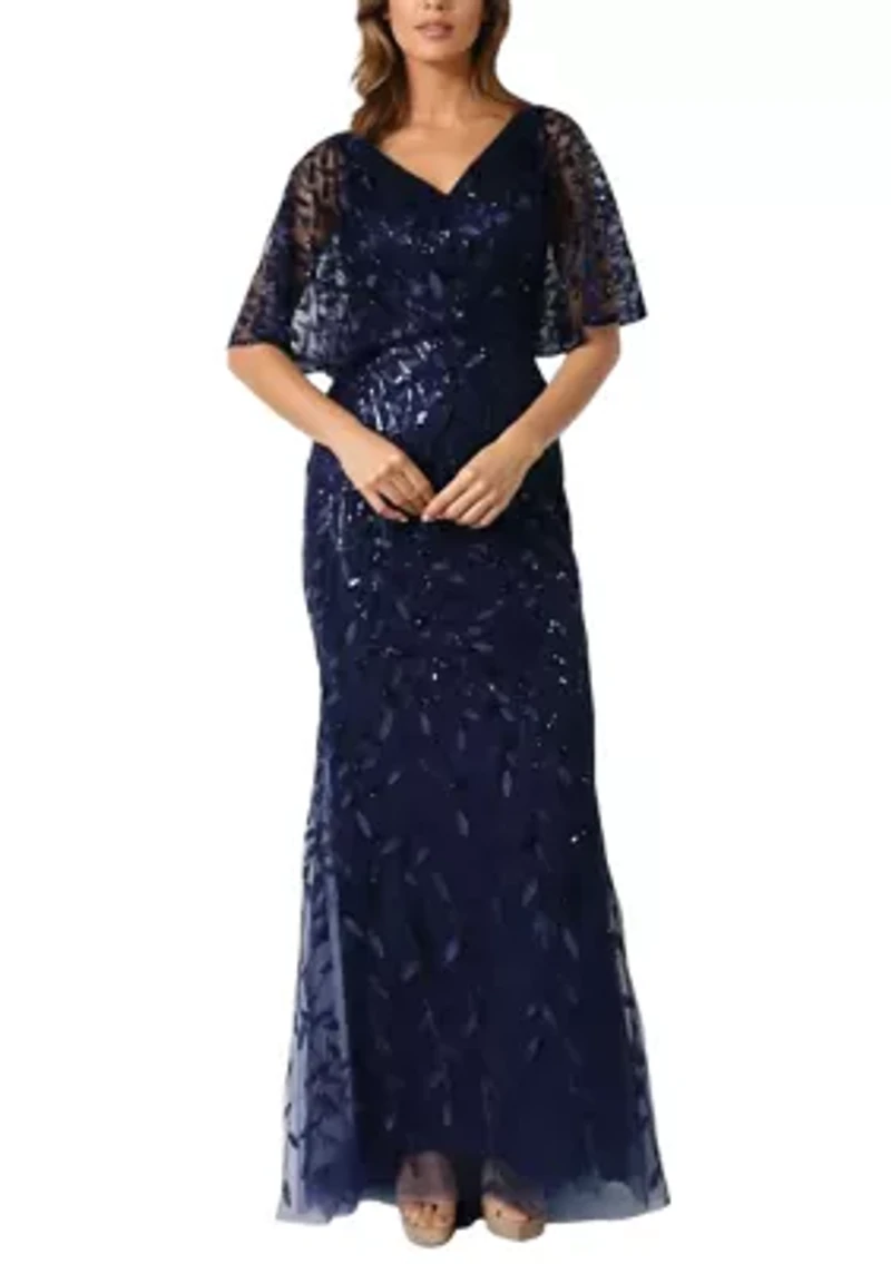 This Rene by Rene Ruiz dress combines timeless elegance with modern comfort. Featuring a flattering V‑neckline and delicate lace overlay, this short‑sleeve design is perfect for evening occasions. Zip closure V-neck Short cape sleeves Lined Imported Product Specifications 60" L Material & Care 100% polyester Dry clean only