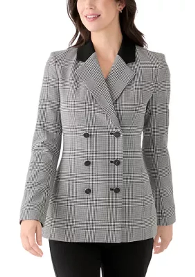 Women's Faux Tweed Double Breasted Houndstooth Jacket