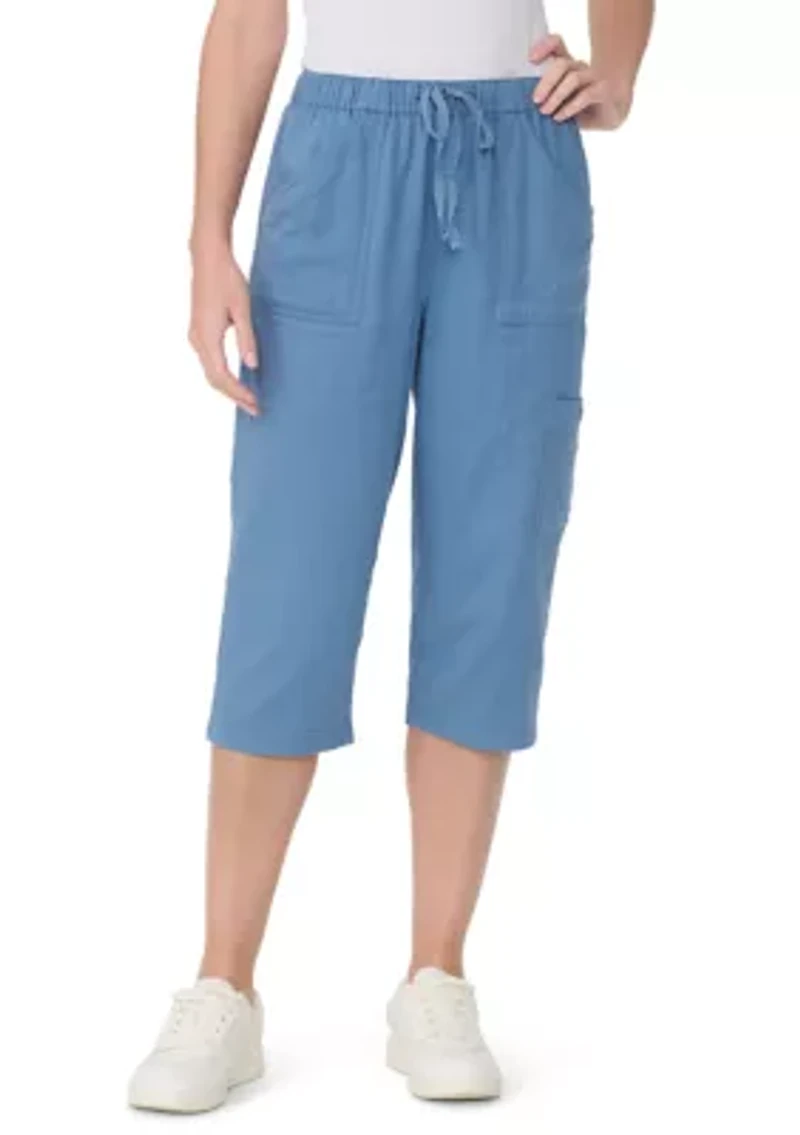 These Gloria Vanderbilt pants feature a mid-rise fit and breezy 100% cotton construction, offering a confident look all day long. Elastic waistband Imported Product Specifications 19" inseam Material & Care 100% cotton Machine washable