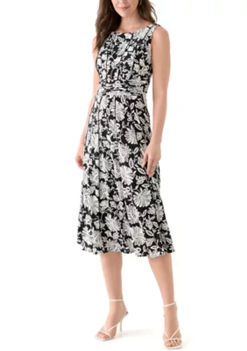 Women's Sleeveless Crew Neck Floral Print Dress