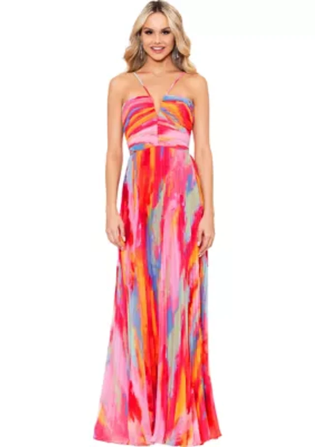Women's Sleeveless Halter Neck Abstract Print Gown