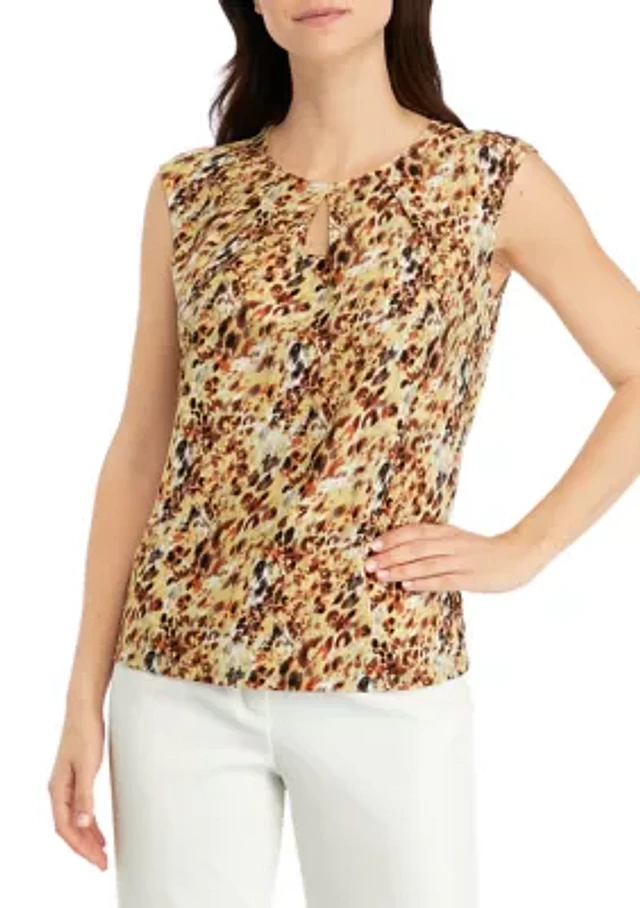 Kasper Women's Pleated Sleeveless Keyhole Top