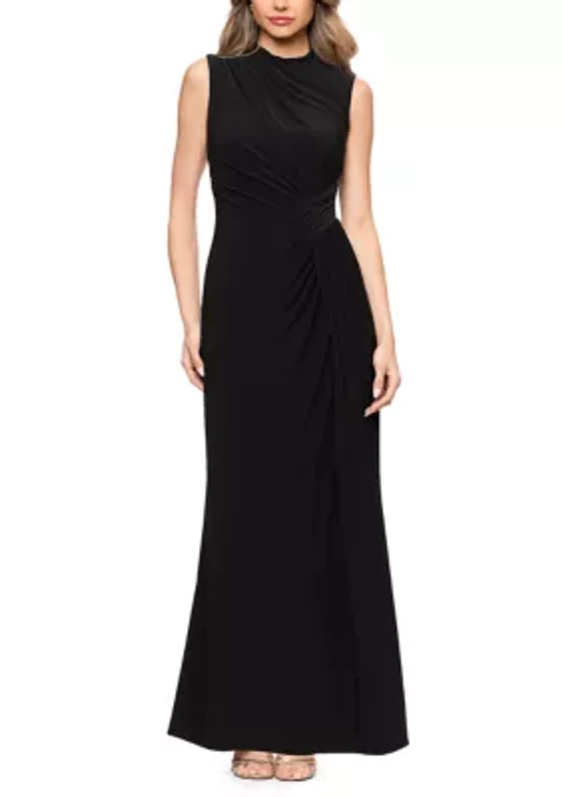 Women's Sleeveless Mock Neck Ruched Gown