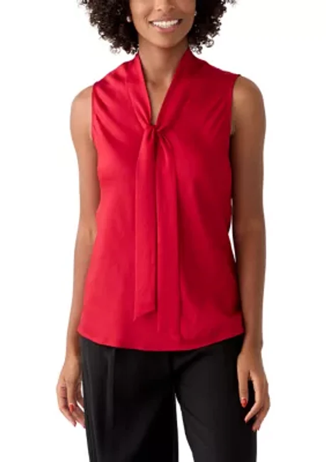 Every Knit V-Neck Sleeveless Tie Front Blouse
