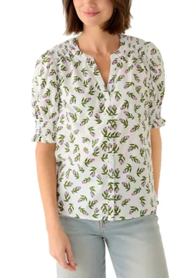 Women's Smocked Button Front Top