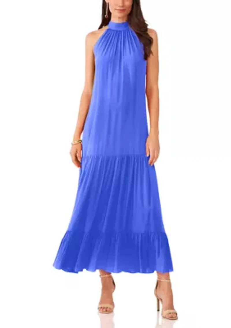 Detailed by a sleek halter neckline and a flowy silhouette, this stunning dress from Vince Camuto is a solid choice for social gatherings or your next event. Tie closure Halter neck Sleeveless Unlined Imported Product Specifications 50.5" L Material & Care Rayon Dry clean only