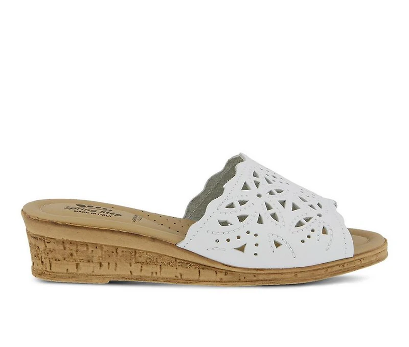 Women's SPRING STEP Estella Wedge Sandals Mid-heel slide wedge featuring a geometric laser-cut leather upper.