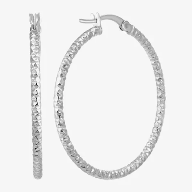Womens Sterling Silver 40mm Round Hoop Earrings