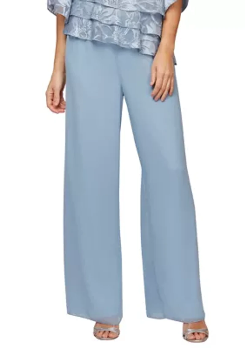 Featured in a mid-rise silhouette, these chiffon pants from Alex Evenings elevate your formalwear. Elastic waistband Lined Trouser fit Straight leg Imported Product Specifications Ankle length 30" Inseam Material & Care Chiffon Polyester Hand wash