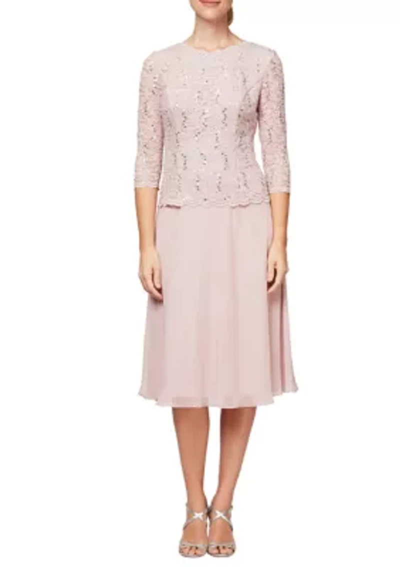 Women's Tea-Length Mock Dress with Sequin Lace Bodice & Chiffon Skirt