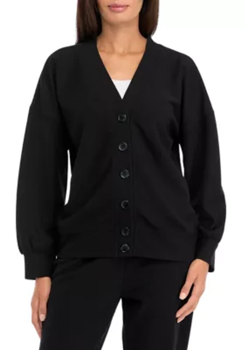 This textured V-neck cardigan from Wonderly will be an easy and effortless layer. Button closure V-neck Long drop shoulder sleeves Unlined Imported Belk Exclusive Product Specifications 25" L Material & Care Polyester, rayon, spandex Machine washable
