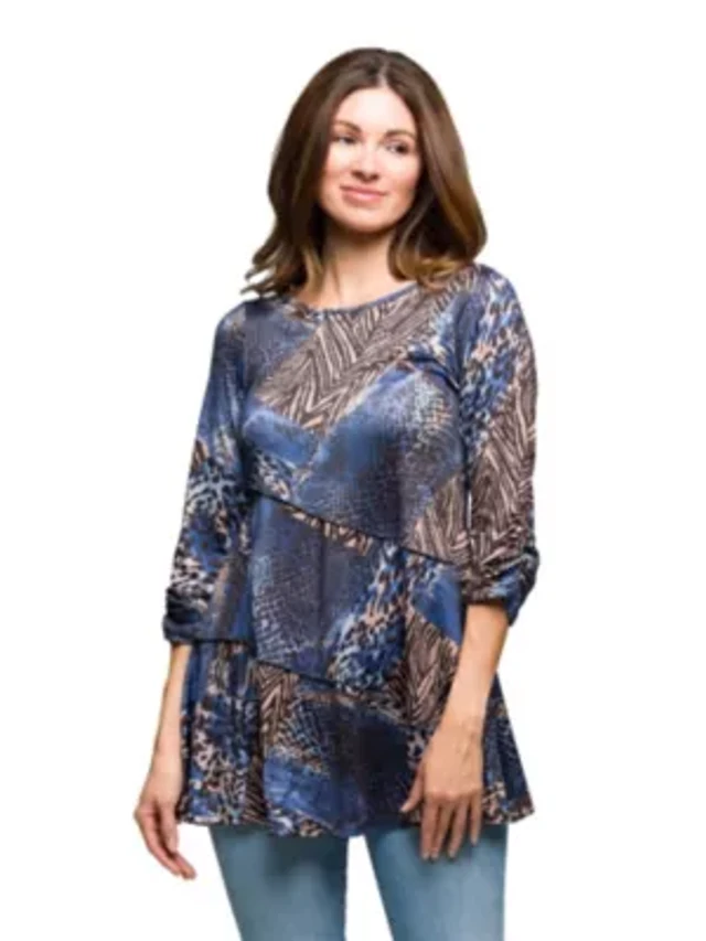 Womens Three Quarter Sleeve Tunic Top Blue Animal Print