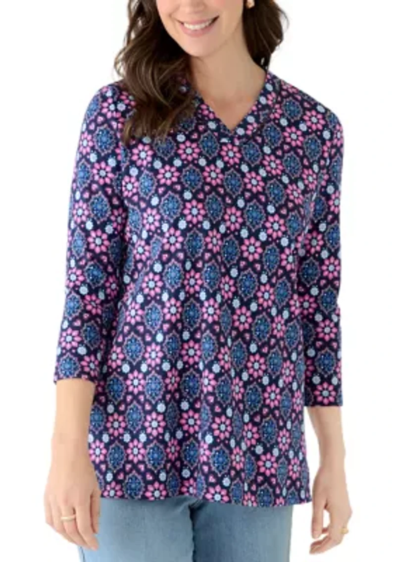 Women's Three-Quarter Sleeve V-Neck Tunic Top with Trim