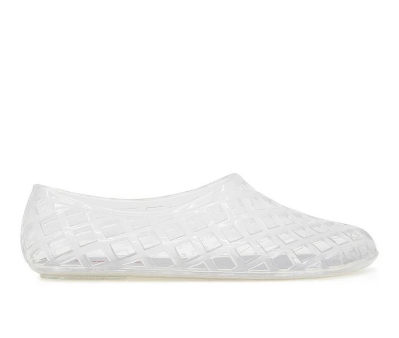 Women's Unionbay Jammie Flats A fun take on the classic jelly look, this flat offers an easygoing style that’s perfect for warm days and casual outings. The plastic upper features a breathable cage design that wraps the foot while allowing airflow for added comfort. Its simple slip-on construction makes it quick to wear whether you're heading out to the beach or running errands. A rounded toe shape keeps the fit relaxed while maintaining a playful, modern look. Designed for effortless summer style, this jelly flat pairs easily with everyday outfits.