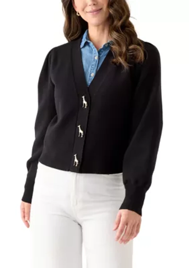 Embellished with gold-tone giraffes in place of buttons, this cardigan from Crown & Ivy™ makes a chic statement. Snap closure V-neck Long sleeve Imported Belk Exclusive Product Specifications 21" Material & Care Viscose, nylon Hand wash