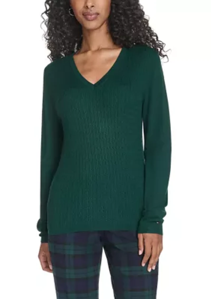 Wrap yourself in cozy comfort with this effortlessly chic sweater. It features a flattering V-neck and long sleeves, perfect for cooler days. The unlined design offers a lightweight feel, while the pullover style ensures easy wear. With a versatile length, this sweater pairs beautifully with jeans or skirts, making it a wardrobe essential. Pullover V-neck Long sleeves Unlined Imported Product Specifications 23.25" L Material & Care Viscose, rayon, nylon Machine washable