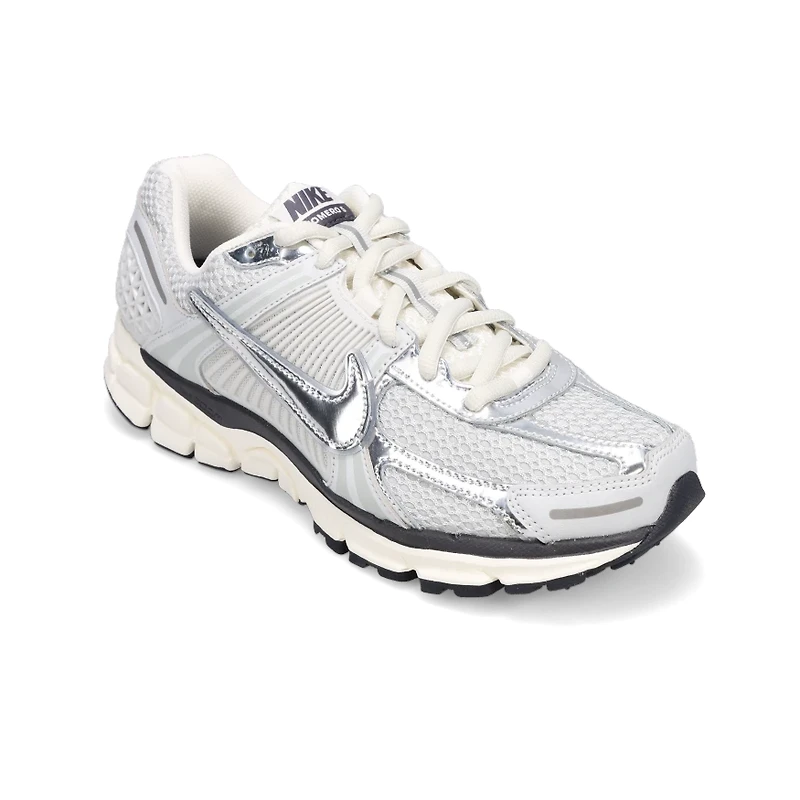 Women's Nike Vomero 5 - Photon Dust/Chrome Carve a new lane for yourself in the Zoom Vomero 5—your go-to for complexity, depth and easy styling. The richly layered design includes textiles, synthetic leather and plastic accents that come together to make one of the coolest sneakers of the season. DETAILS: Synthetic leather on the upper adds durability. Air Zoom cushioning helps provide a quick-off-the-ground sensation. Plastic caging on the side adds support. Rubber outsole gives you durable traction. Foam midsole Reflective design details
