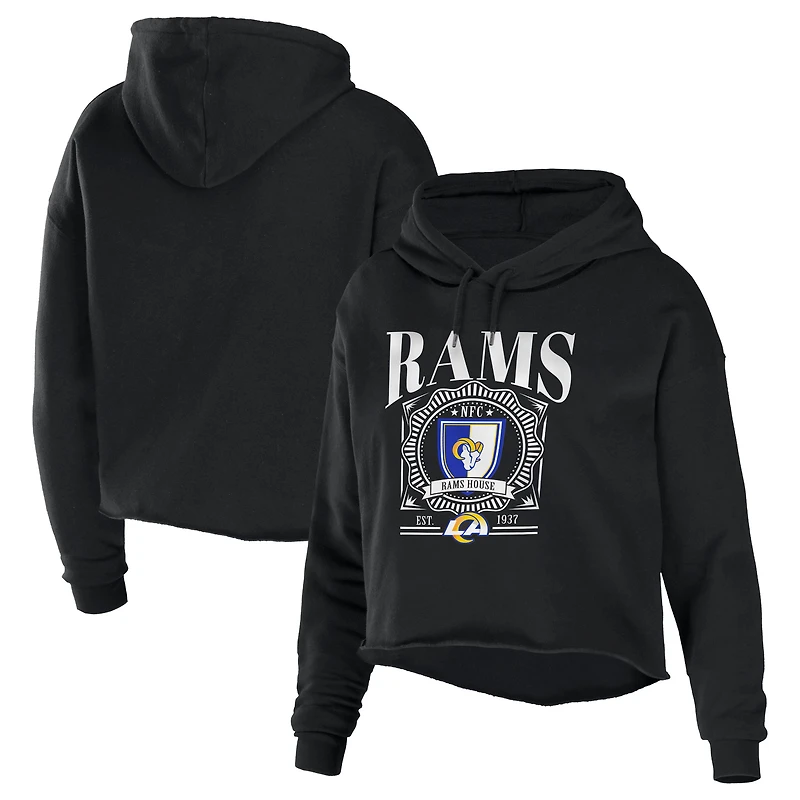 Women's WEAR by Erin Andrews Black Los Angeles Rams Cropped Sponge Fleece Pullover Hoodie