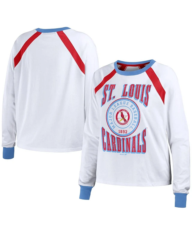 Women's Wear by Erin Andrews White Distressed St. Louis Cardinals Raglan Long Sleeve T-shirt