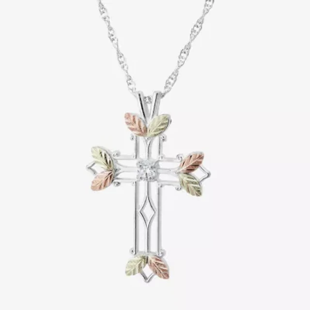Womens White Cubic Zirconia Sterling Silver Cross 18 Inch Pendant Necklace