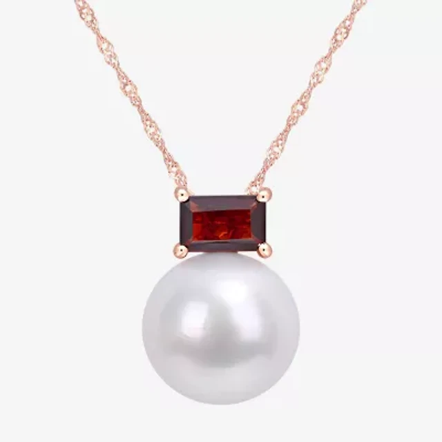 Womens White Cultured Freshwater Pearl 10K Rose Gold 17 Inch Pendant Necklace