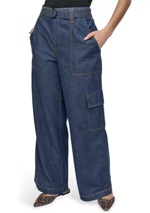 Jones New York Women's Cotton Wide-Leg Chambray Pants