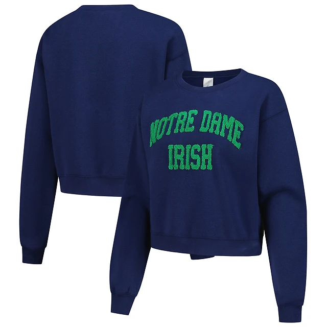 Women's ZooZatz Navy Notre Dame Fighting Irish Chenille Cropped Sweatshirt