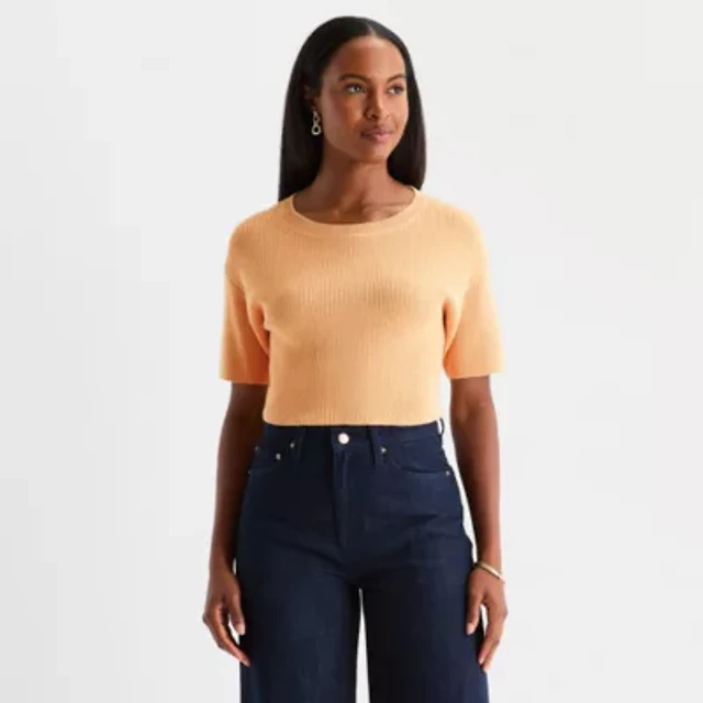 Worthington Womens Crew Neck Short Sleeve Pullover Sweater