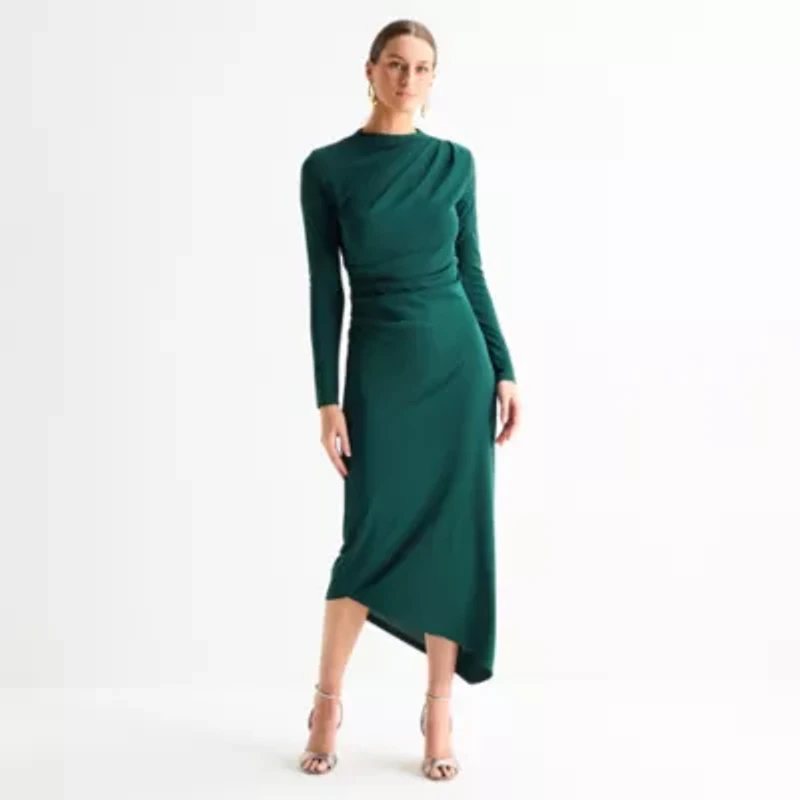 Worthington Womens Long Sleeve Midi Bodycon Dress