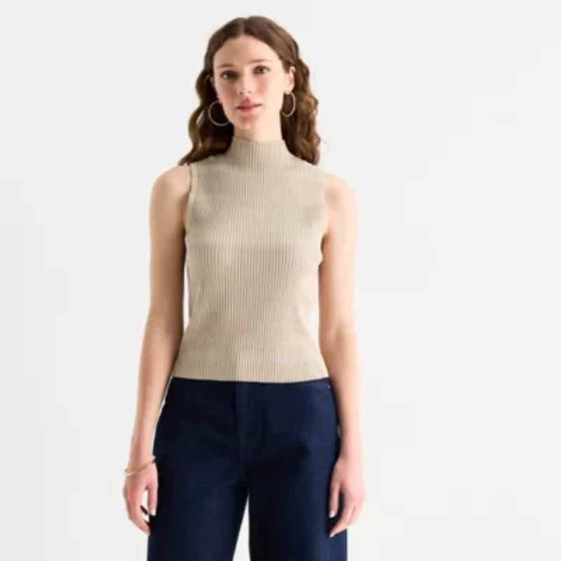 Worthington Womens Mock Neck Sleeveless Pullover Sweater