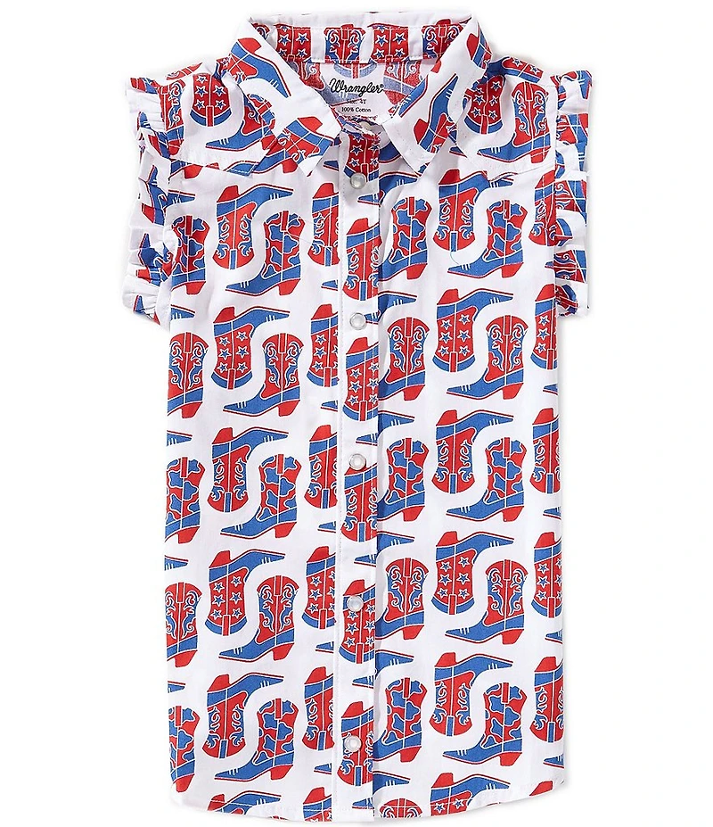 Wrangler® Little Girls Ruffle Flutter Sleeve Western Boot Printed Snap Button Front Shirt