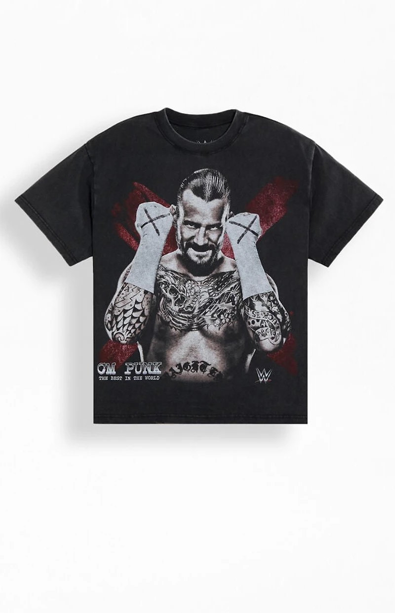 The WWE CM Punk T-Shirt brings legendary attitude and edge straight from the ring. Crafted from vintage wash fabrication, this tee boasts short sleeves, a crew neckline and bold front and back graphics for those wrestling vibes to your casual style.