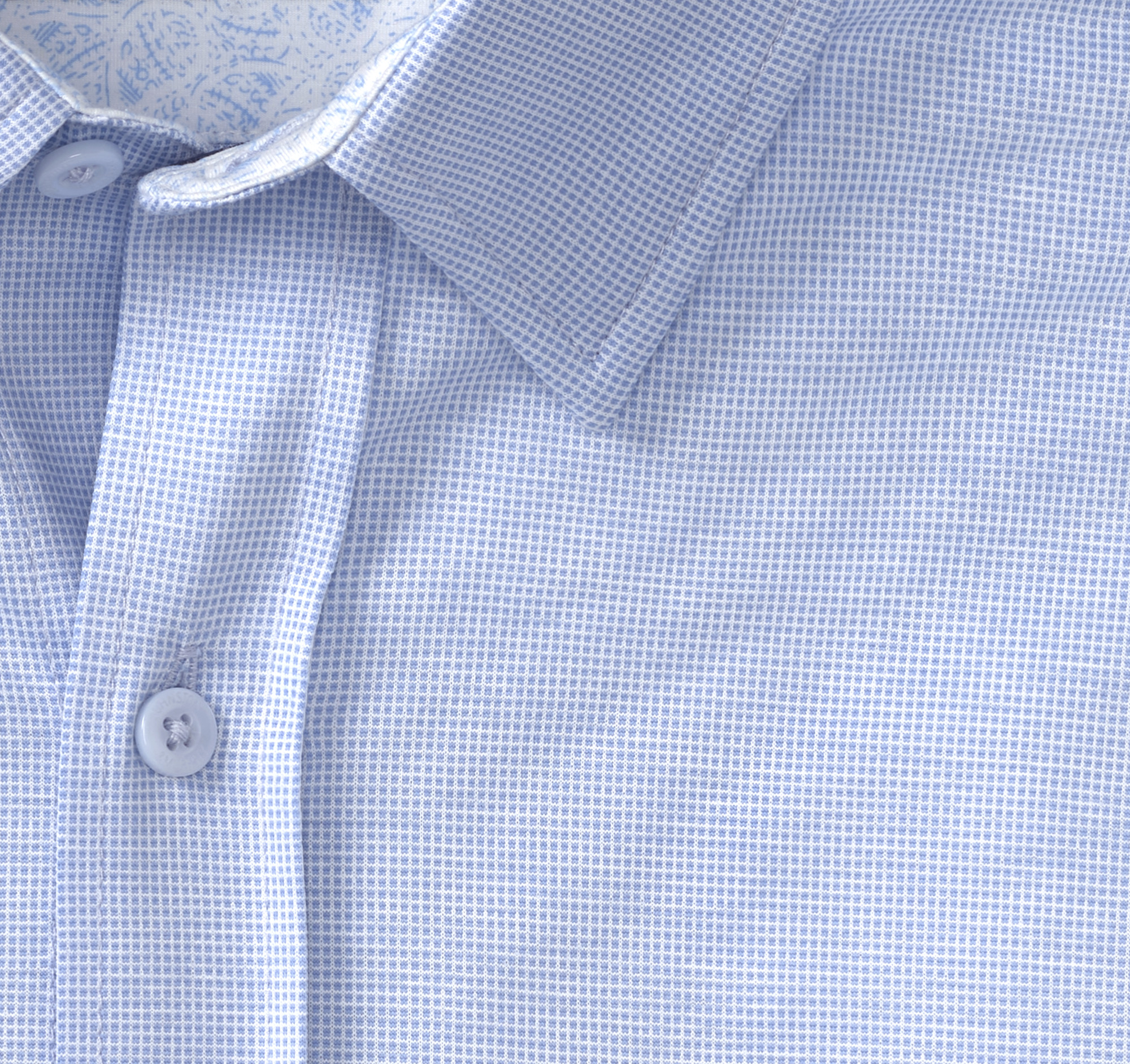 - The look of a woven dress shirt in soft knit offers exceptional versatility and comfort.