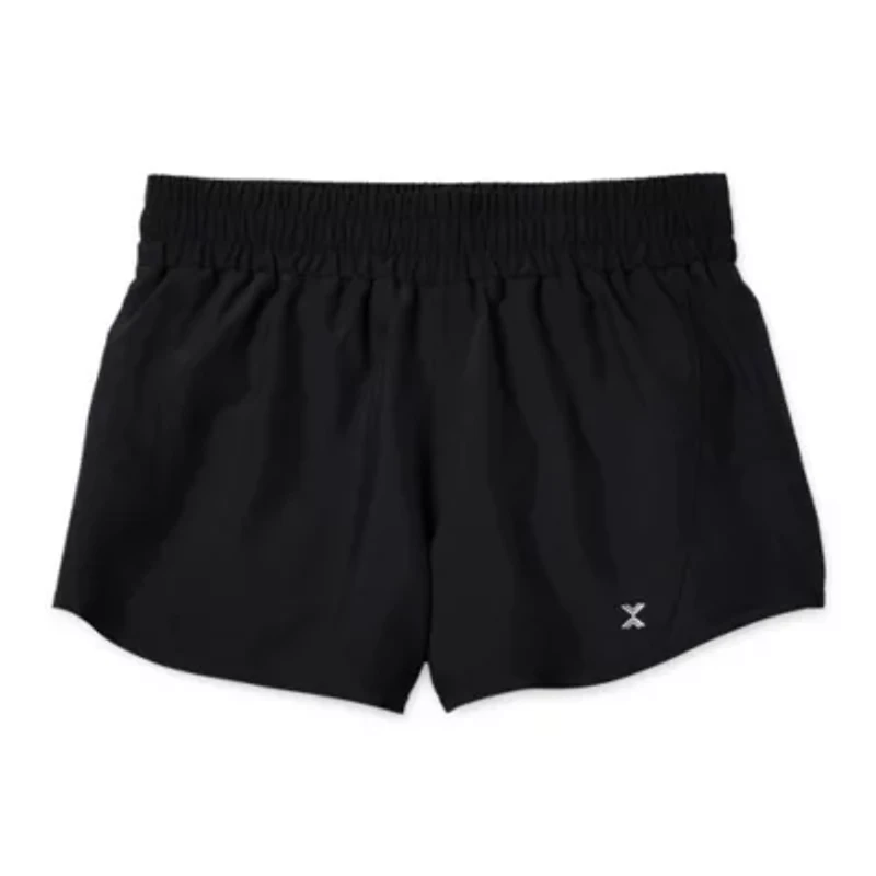For the active girl in your life, these Xersion little and big girl's running shorts are a must-have addition to her wardrobe. The flat front shorts are made from a plain weave fabric and feature an athletic-fit and an elastic-drawstring waistband. Team them with an active tank top and sneakers.