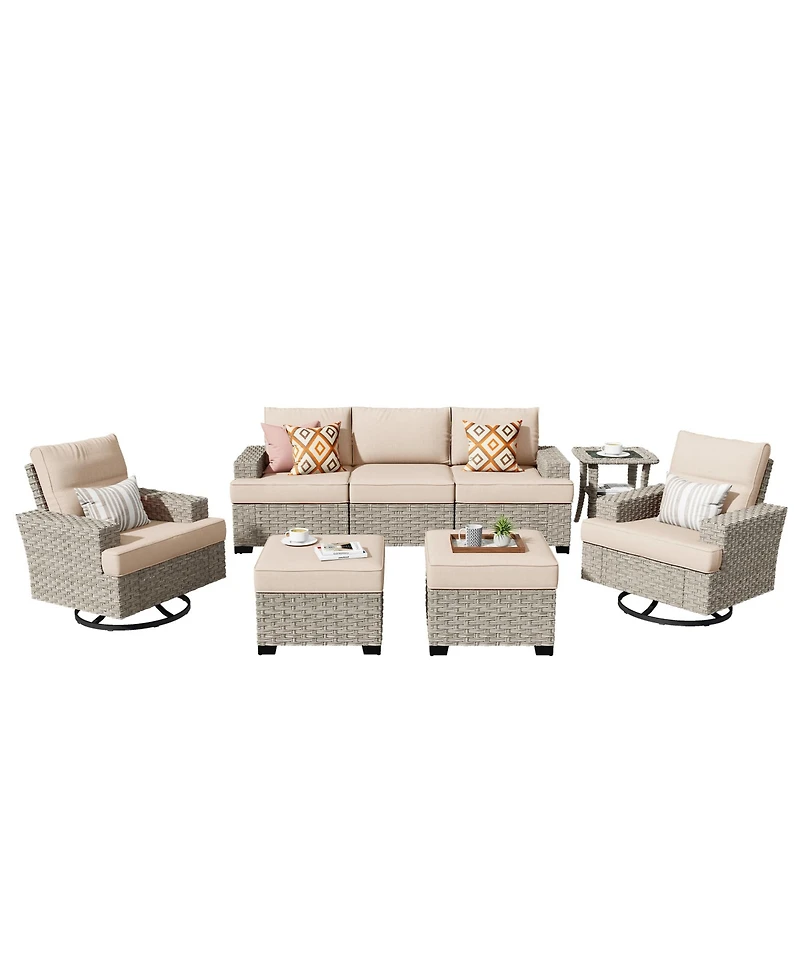 Xizzi 8 Piece Outdoor Rattan Patio Furniture Set with Sofa & Ottoman
