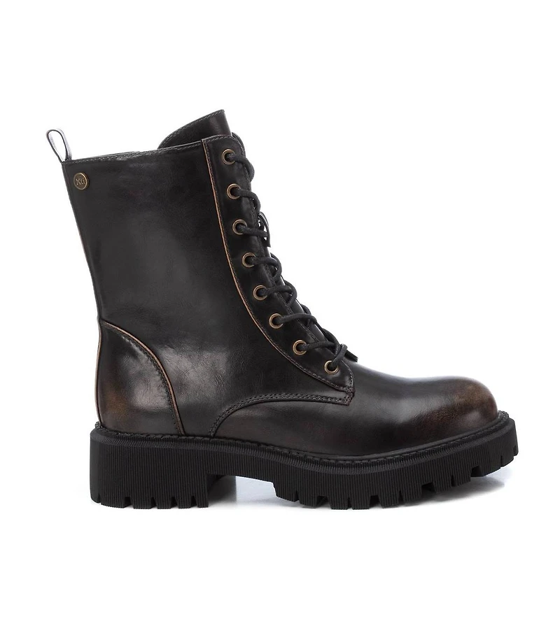 Take your style to the next level with Xti Shoes! These combat booties are the perfect blend of casual and comfort. Trend design that goes well with every outfit. Side zipper closure and lace-up for easy fit. Metallic gold decorative details. Lightweight non-slip rubber sole.