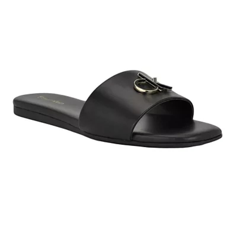 Modern and stylish, the Calvin Kelin Yancie casual sandals are a wardrobe must have! It features a modern square toe, CK logo detailing on the upper and a slip-on silhouette. Founded in New York in 1968, the brand elevates everyday essentials to globally iconic status. -Material: Faux Leather Slip-on Imported Product Specifications 0 in. M Material Faux Leather