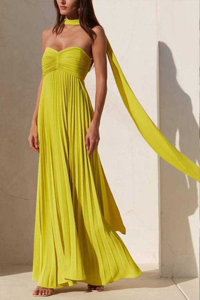 Yellow Pleated Maxi Dress