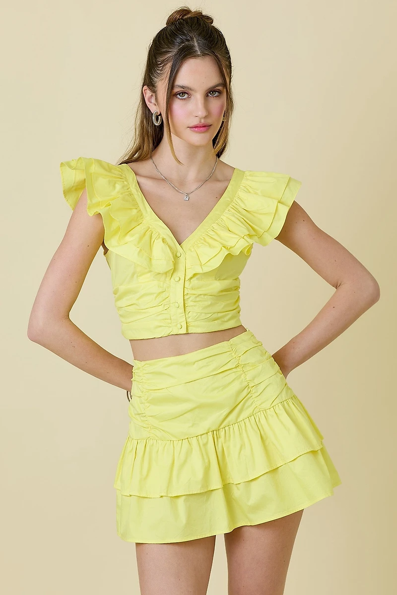 Yellow Ruffle Detail Crop Top & Skirt Matching Set in Franklin, TN