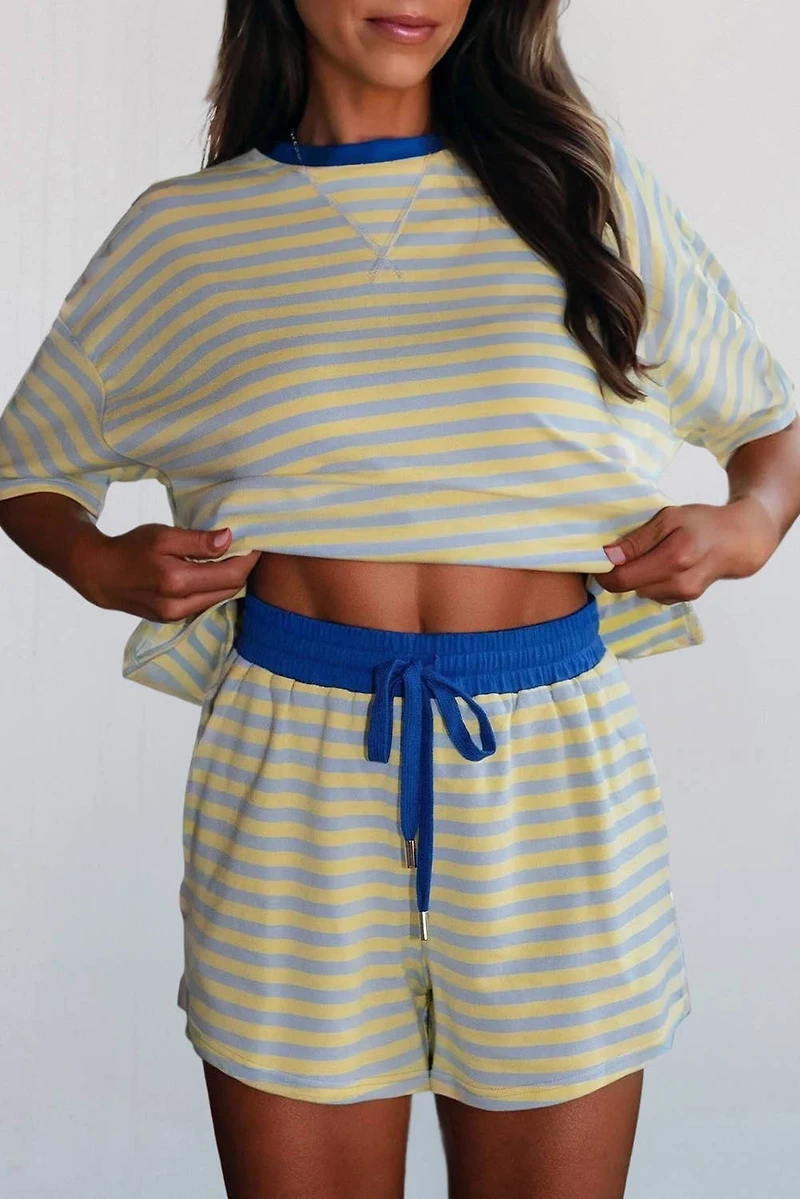 Yellow Stripe Terry Short Set