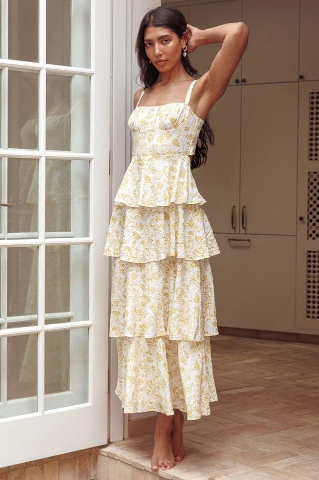 Sunshine Dream Open Tie Back Floral Maxi Dress