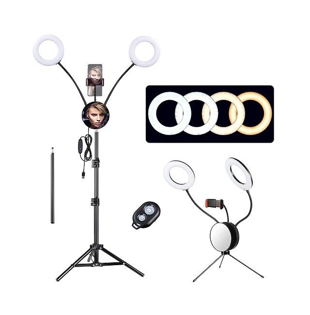 Yescom 7" Dual Led Ring Light Dimmable with Stand Phone Holder for Makeup Selfie Vlog