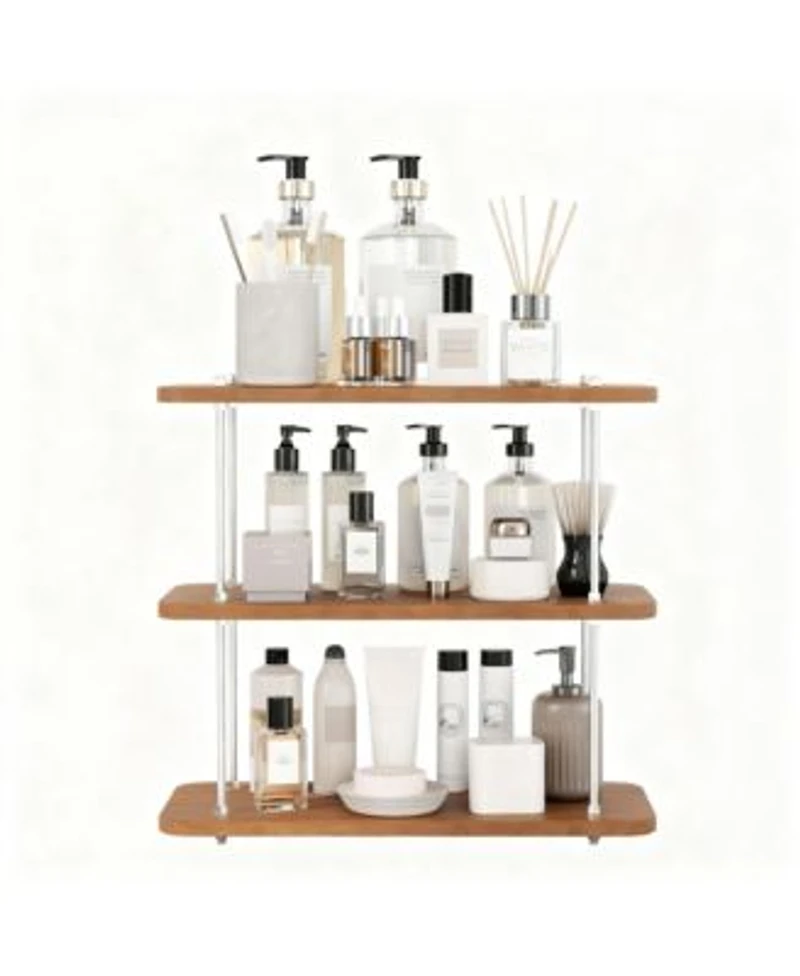 Yigii 3-Tier Adjustable Wood Iron Vanity Storage Shelf Kitchen