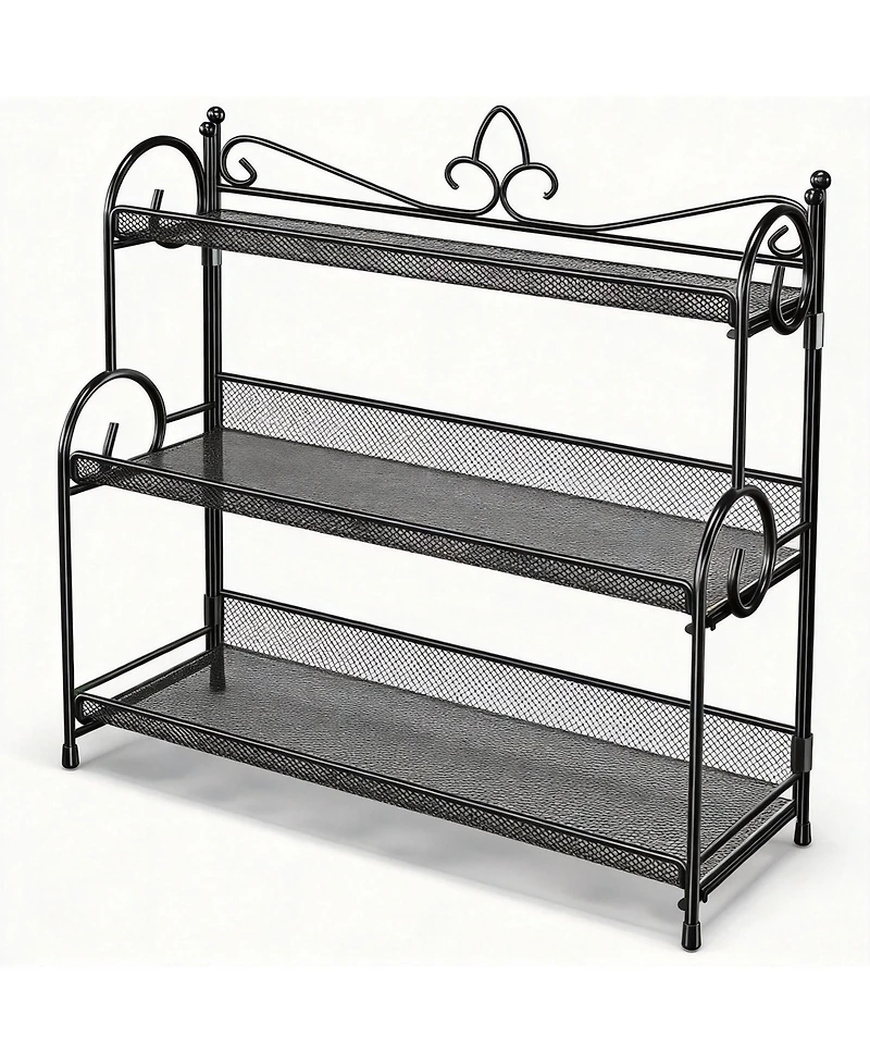 3-Tier Foldable Counter Shelf: open it up and you have three levels for spices, jars, makeup, lotions, or any small everyday items when you need space, it folds flat in seconds and tucks away. The slim steel frame with a matte finish fits kitchens, bathrooms, or vanities without taking over the counter, while rubber feet keep it from sliding or scratching surfaces. No screws, no tools, just unfold and use wipe clean when needed. Weight: 2.18 pounds. Length: 5.80 inch. Width: 11.80 inch. Height: 16.60 inch.
