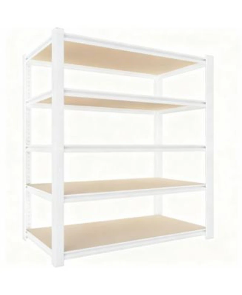Industrial Strength Construction: white storage shelf built with reinforced steel frames and thick wood boards that resist warping double-layer columns spread weight evenly, each shelf holds 300 lb, total 1500 lb. Multifunctional Shelves: 28 x 12 x 59 in unit fits closet, pantry, kitchen, laundry, garage, basement, office or store. Stronger Metal Connectors: locking steel snaps stay tight, won t crack like plastic. Effortless Assembly: bolt-free design, tap together in 10 min with included mallet, floor-friendly feet. Flexible Height Adjustment: shelves move up or down, splits into two 3-tier sections for different items. Anti-tip Kits: secure the rack when fully loaded. Weight: 0.03 pounds. Length: 12.00 inch. Width: 28.00 inch. Height: 59.00 inch.