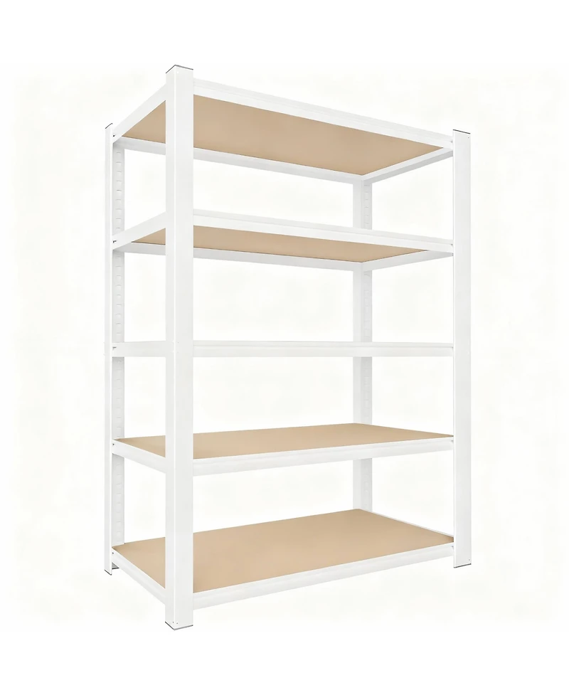 Industrial-strength white storage rack built from reinforced steel frames and thick warp-resistant wood boards double-layer uprights boost stability and keep edges smooth. Five shelves hold 300 lb each, 1 500 lb total. 16 x 24 x 59 in unit fits closets, pantries, kitchens, garages, offices and more. All-metal locking connectors resist cracking bolt-free assembly with rubber mallet takes about ten minutes. Shelves adjust in 1-inch steps and the frame splits into two separate 2-shelf units for smaller spaces. Rubber foot caps protect floors. Weight: 0.31 pounds. Length: 16.00 inch. Width: 24.00 inch. Height: 59.00 inch.