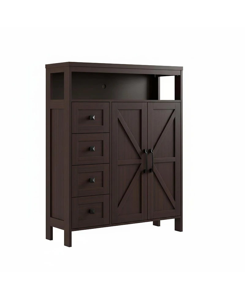 This practical buffet table offers various storage choices with spacious compartments, four drawers, and two cupboards-each with internal shelving-for a blend of accessible and concealed spaces to neatly organize your belongings. Marrying farmhouse aesthetics with contemporary utility, it boasts a minimalist look alongside ample storage capacity, featuring charming wood grain and barn-inspired shapes to provide an elegant solution for storing dinnerware while infusing rustic elegance into your decor. Made from high-quality Mdf wood and hardware, it promises superior stability and long-lasting endurance, with a lightweight build that allows for easy relocation to adapt to changing needs. Beyond storage, this versatile piece can serve as a hallway console table for displaying family photos, a living room accent cabinet for tidying miscellaneous items, or even a Tv stand for media devices. Available colors: Espresso, Grey, Unique White, Walnut, White