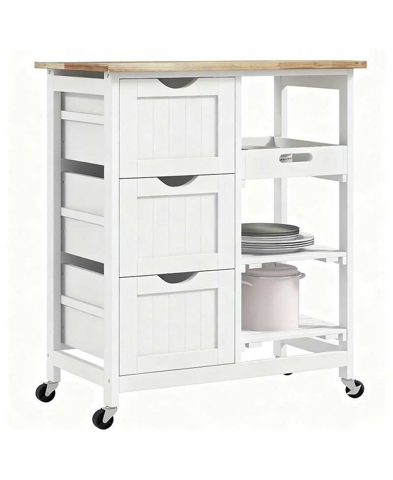 Yigii kitchen cart, beveled shelves with storage, solid wood top, adjustable shelves